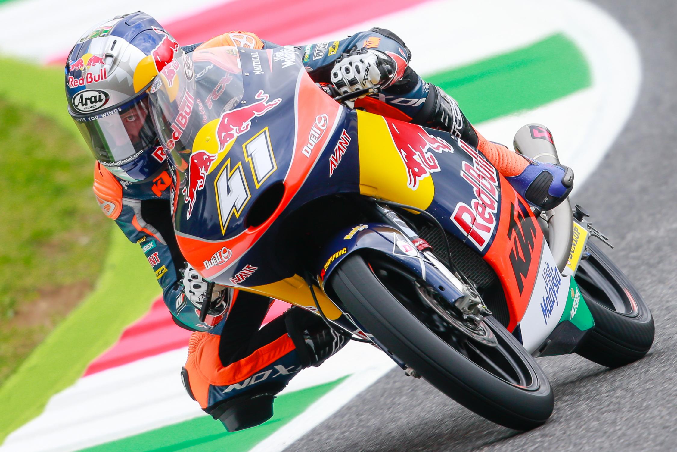 The first part in the motogp czech gp qualifying had ktm's brad binder leading after their first run with a 1m56.291s at brno from pramac racing ducati's jack miller (1m56.352s) with lcr honda's.